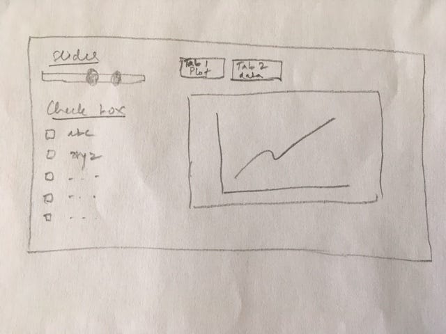 Once the skeleton is created, we can start filling in the details. We start with the sidebar panel, where the user will be interacting with the data. The two different ways of interaction considered are (1) slider inputs and (2) check box. For slider inputs we will be using the sliderInput()